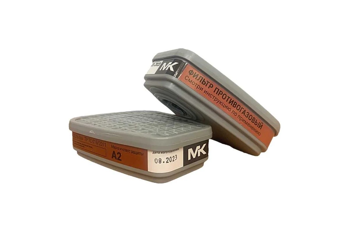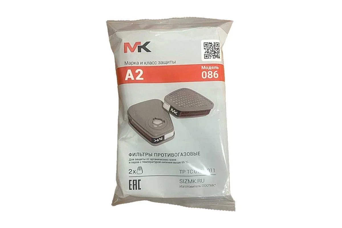 Противогазовый фильтр МК класс защиты А2, модель 086 МК086 предназначен для очистки вдыхаемого воздуха от органических газов и паров с температурой кипения выше 65 градусов в составе фильтрующего противогаза MK 85 (панорамная полнолицевая маска) или фильтрующего респиратора МК 75 (силиконовая полумаска из изолирующих материалов). Защищает от красок, растворителей, эмалей, герметика, клея, лаков, спирта, бензина, керосина, смол, в том числе эпоксидных и других запахов класса и концентрации А2.